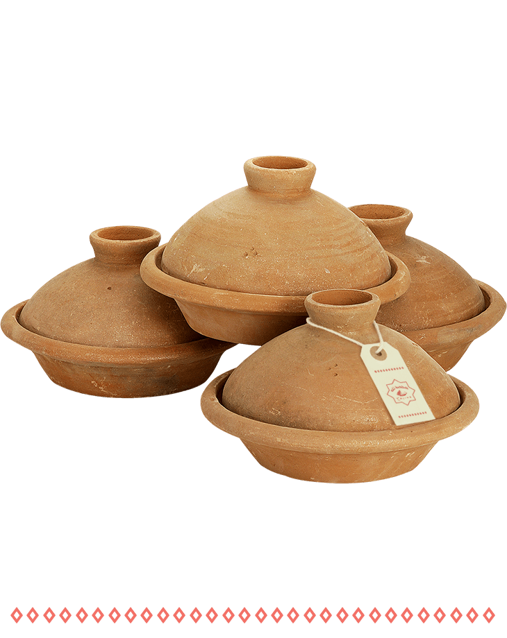 Garantie auf Materialfehler – im Notfall kostenloses Ersatzteil. Reine Handarbeit seit 1989 – Original aus Marokko. Unsere Ali Baba Tajines werden in Handarbeit mit reiner naturbelassener Lehmerde hergestellt. Diese Lehmerde hat Dank ihrer natürlichen Zusammensetzung keinerlei Schwermetalle in sich und ist enorm hitzeunempfindlich. Der Lehm als guter Wärmespeicher sorgt für gleichmäßige Hitzeverteilung und ermöglicht es, Zutaten im eigenen Saft schonend zu garen. Dadurch bleiben die Nährstoffe und der Eigengeschmack erhalten. Die Ali Baba Tajine ist eines der wenigen Küchengeräte, die durch den Gebrauch ihre Eigenschaften verbessert und immer schöner wird.
