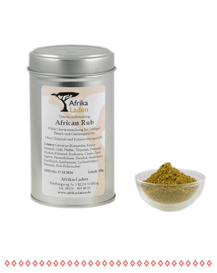 In einem sind die Südafrikaner in jeden Fall Weltmeister: Im Grillen. Nirgendwo wird der Grill öfter angeschürt als dort. African Rub ist eine typische Gewürzmischung, die sich ganz hervorragend zum Marinieren von Fleisch eignet, aber auch als Dip mit Sahnequark, Frischkäse oder Schmand eine herrliche Ergänzung ist.