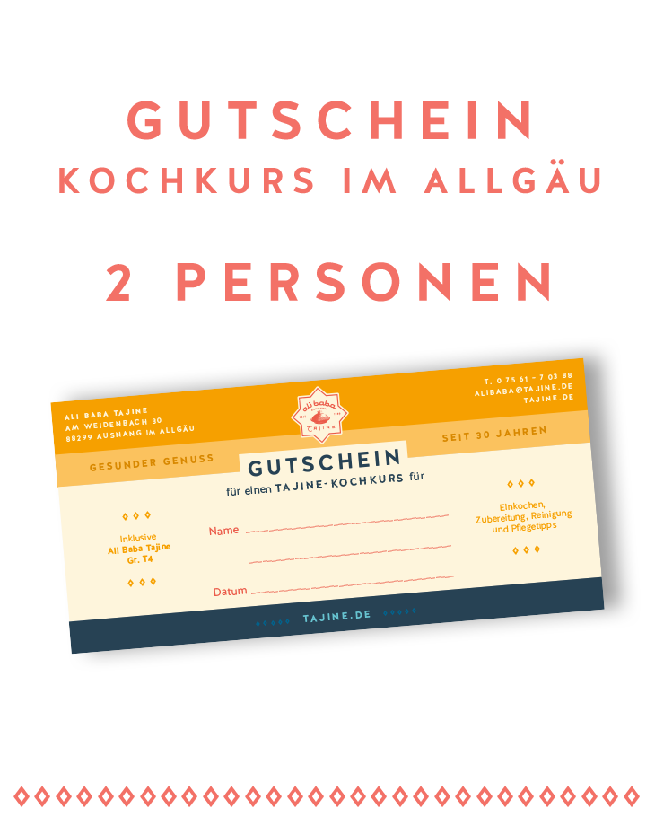 + Einkochen, Zubereitung, Reinigung und alle Pflegetipps - Jede Tajine wird sorgfältig und unter Anleitung mit Jochen Walter eingekocht.